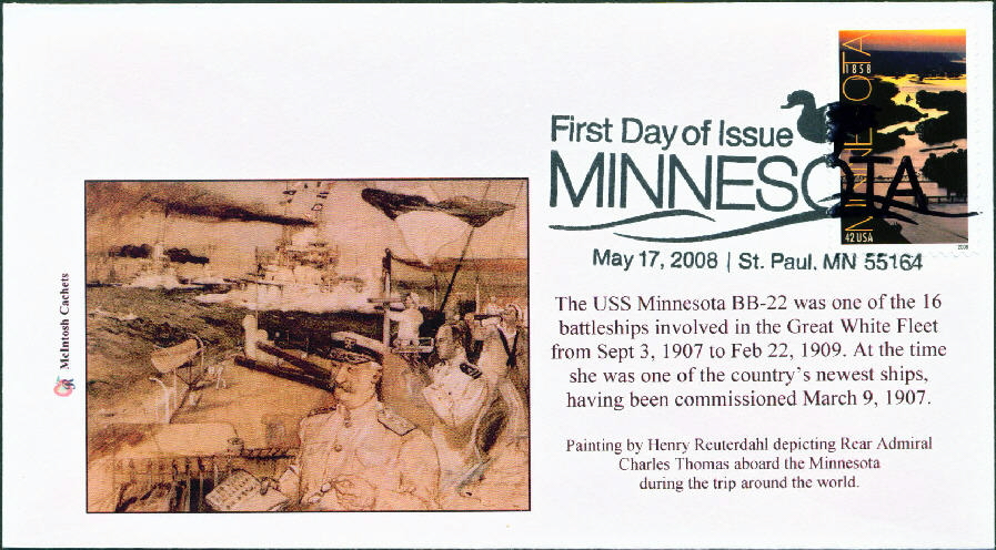 USS Minnesota BB22 of the Great White Fleet - Pictorial Cancel - 5/17/08 - $4 |