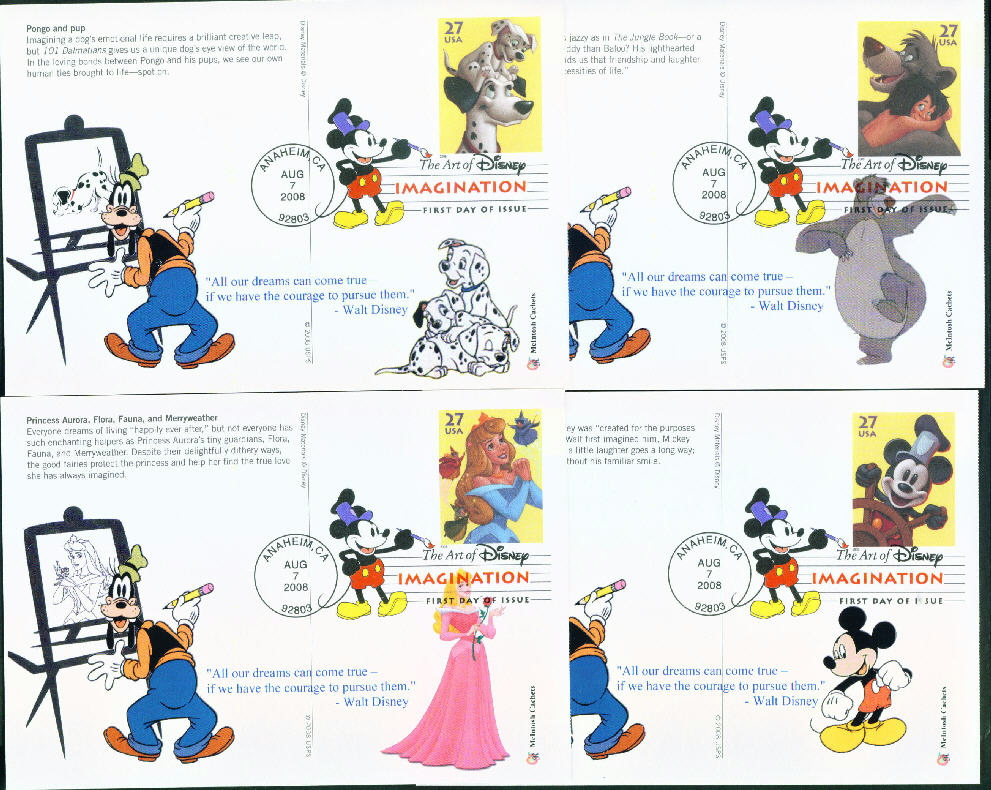 Disney Imagination Set Of 4 Post Cards